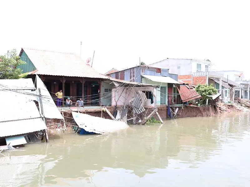 | Uy hiếp tính mạng, tài sản nhân dân Theo báo cáo của Bộ NN&PTNT, từ năm 2010 tới nay, tình trạng sạt lở tại ĐBSCL diễn biến ngày càng phức tạp, nghiêm trọng, uy hiếp trực tiếp đến tính mạng, tài sản của nhân dân. Trung bình mỗi năm xói lở đã làm mất khoảng 300 ha đất, rừng ngập mặn ven biển. Hiện toàn ĐBSCL có 564 điểm sạt lở với tổng chiều dài trên 834 km. Trong đó, sạt lở bờ sông 512 điểm với tổng chiều dài khoảng 566 km (chủ yếu diễn ra dọc theo các sông Tiền, Hậu, Vàm Cỏ Đông, Vàm Cỏ Tây…) và sạt lở bờ biển 52 điểm với tổng chiều dài 268 km. Tương tự, tình trạng xâm nhập mặn có xu hướng xuất hiện sớm hơn, sâu hơn so với trước đây, thường xuyên ở mức 50-60 km. Điển hình năm 2016 nước mặn vào sâu kỷ lục 90 km, ảnh hưởng nghiêm trọng đến sản xuất nông nghiệp của vùng. |