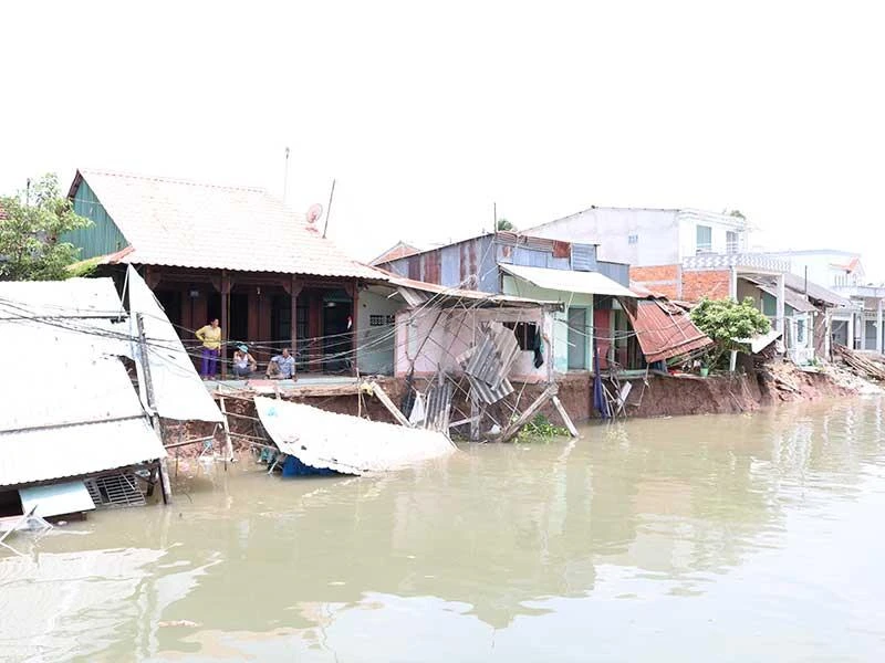 Vụ sạt lở ngày 24-4 tại khu vực Thới Lợi, phường Thới An, quận Ô Môn, TP Cần Thơ khiến hơn chục căn nhà bị ảnh hưởng. Ảnh: HẢI DƯƠNG