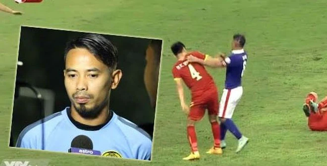 Safiq dùng tiểu xảo đánh một cầu thủ Việt Nam ở bán kết lượt đi AFF Cup 2014 trên sân Shah Alam.