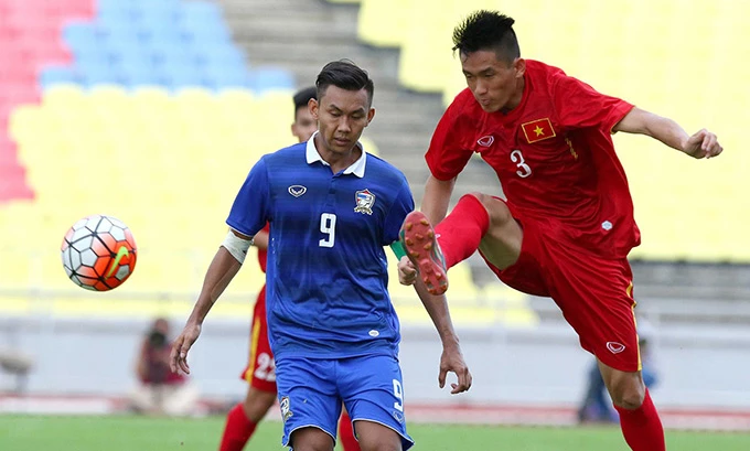 Văn Thanh (U-22 Việt Nam) phải chơi... Rugby để ngăn cản Chenrop Samphaodi tại SEA Games 29