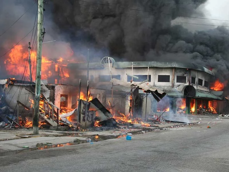 Cảnh tượng trong vụ bạo loạn tấn công vào các cửa hàng người TQ ở thủ đô Nuku’alofa, Tonga năm 2006. Ảnh: NUKUALOFATIMES