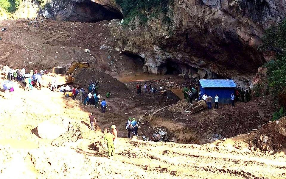 Trước đó, như Pháp Luật TP.HCM đưa tin, vào 2 giờ sáng 4-11, tại mỏ vàng khai thác trái phép ở xã Thanh Nông, huyện Lạc Thủy xảy ra sự cố hồ nước ngoài cửa hang bị vỡ khiến nước cuốn theo đất đá tràn vào hang bịt kín lối ra làm hai phu vàng bị mắc kẹt bên trong.