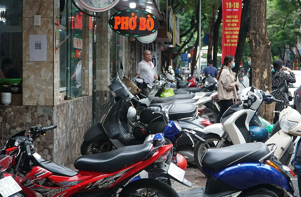 Ghi nhận của PLO vào sáng nay (14-10), tại một số cửa hàng ăn trên phố Tô Hiệu (Cầu Giấy – Hà Nội), hàng chục xe máy đỗ kín ngoài cửa.