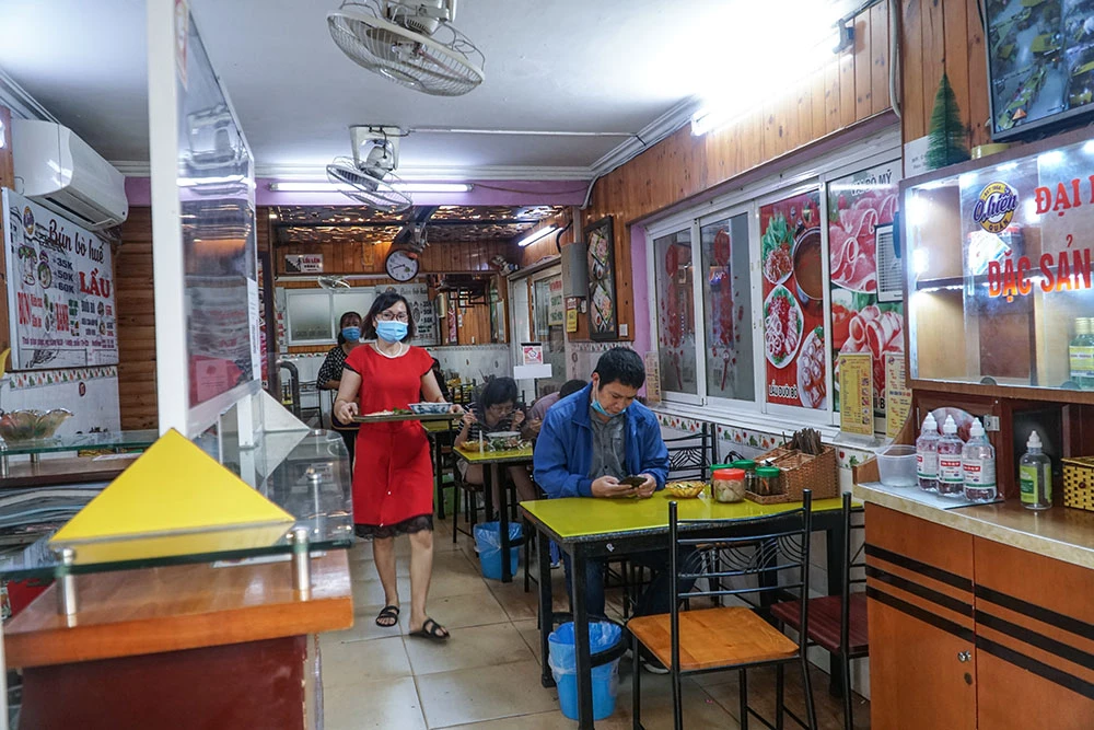 "Dự kiến trong ngày cửa hàng sẽ bán được 80 kg bún, tất nhiên so với trước thì không được bằng. Nhưng đó cũng là tín hiệu tích cực trong ngày đầu Hà Nội cho phép khách hàng được ngồi ăn tại chỗ"- chị Tiến nói.