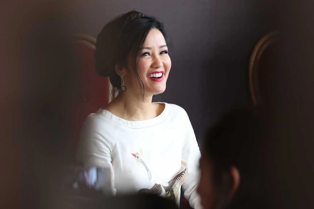 Hồng Nhung của hôm nay cởi mở, có những tràng cười thoải mái hơn trong gặp gỡ báo chí.