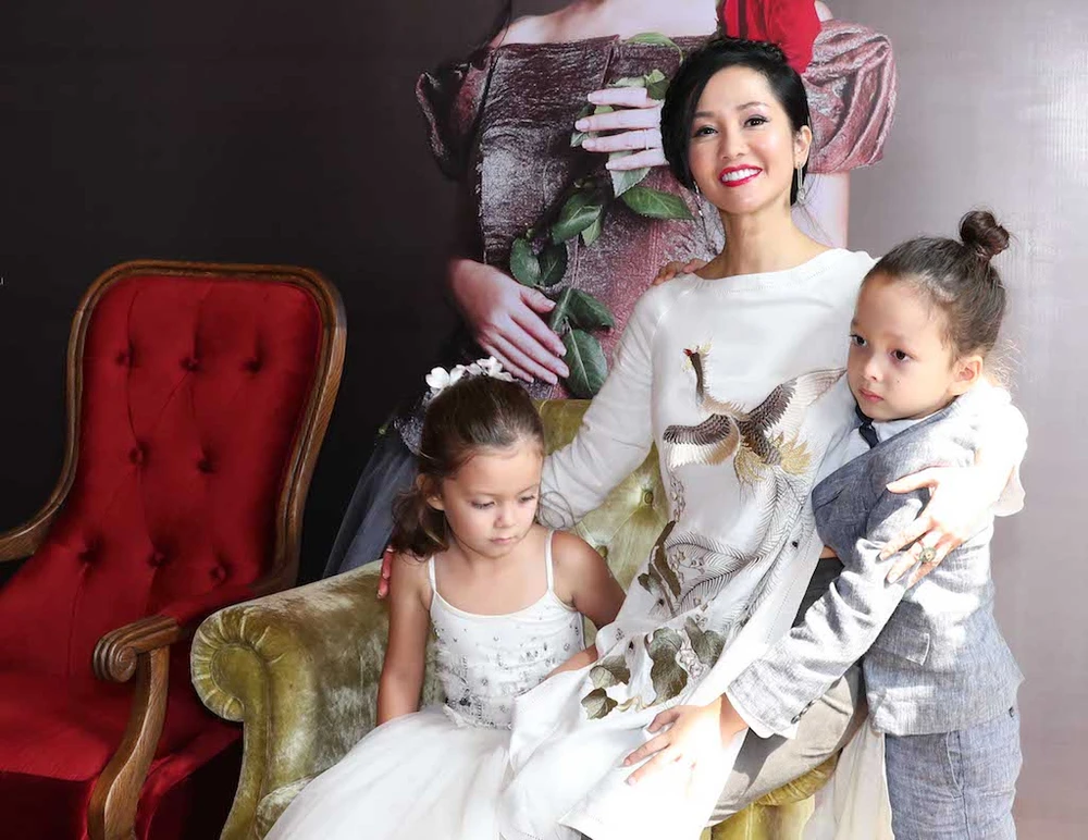 Ca sĩ Hồng Nhung cùng hai con Tôm và Tép.