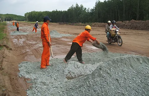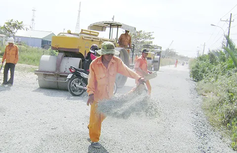 Trải đá đường Rừng Sác (lúc đó là đường Duyên Hải - Nhà Bè) những năm 1990. Ảnh: LĐ