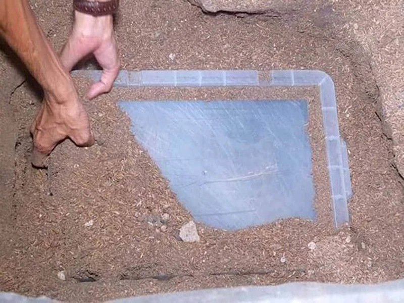 Các nghi can chôn tiền cướp được trong hộp nhựa.