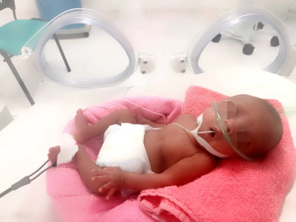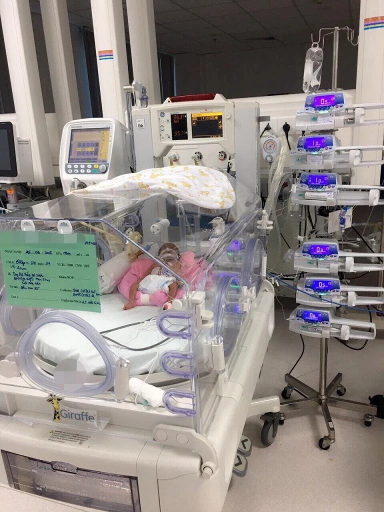 Ngày 25-6, chị T. quê ở Hậu Nghĩa – Long An, chuyển dạ sinh khi thai chỉ mới 24 tuần do ối vỡ non tại bệnh viện Hậu Nghĩa. Lúc mới sinh, bé gái chỉ nặng 600g. Sau sinh, bé suy hô hấp, không tự thở được nên được đặt ống nội khí quản giúp thở và chuyển đến Bệnh viện Nhi đồng Thành phố, TP.HCM.