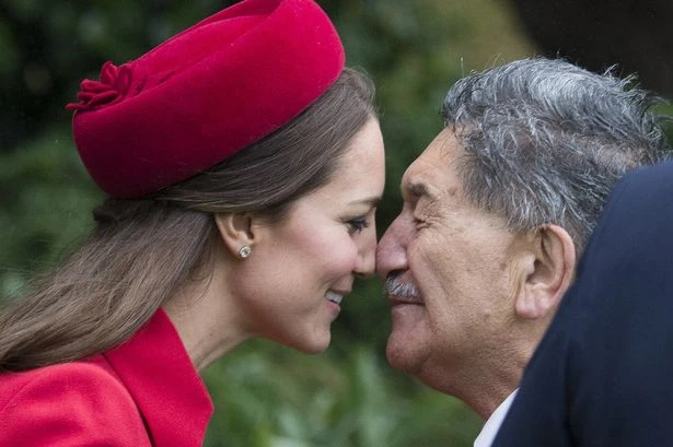 Công nương Kate tỏ ra mình là người phụ nữ nhanh nhẹn và duyên dáng khi nhanh chóng học hỏi được cách chào hỏi thân thiện theo kiểu truyền thống của người dân bản địa New Zealand. Với vai trò tháp tùng chồng của mình, hoàng tử William, Kate đã thực hiện ngay động tác “cọ mũi”, còn được gọi là kiểu chào “hongi” với các thổ dân Maori. Đây là kiểu chào mà hai bên sẽ cọ nhẹ mũi vào nhau, trao hơi thở cho nhau trong một khoảnh khắc, biểu trưng cho sự gần gũi và tin tưởng.