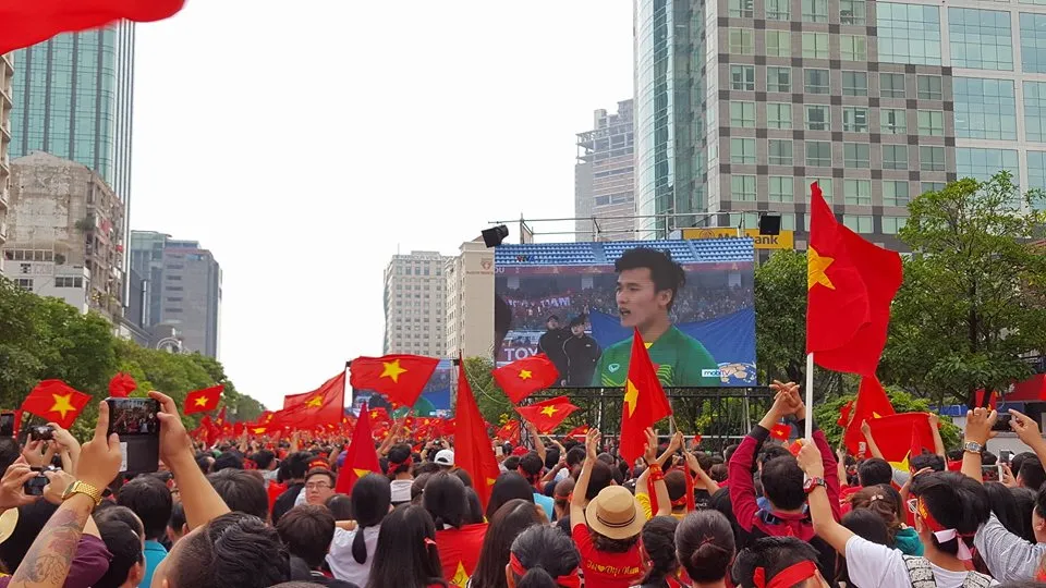 Lúc 3 giờ 45 phút, sau khi Quang Hải sút cú phạt thần sầu cân bằng tỉ số 1-1 trước Uzbekistan, các màn hình trên phố đi bộ Nguyễn Huệ bị hỏng.