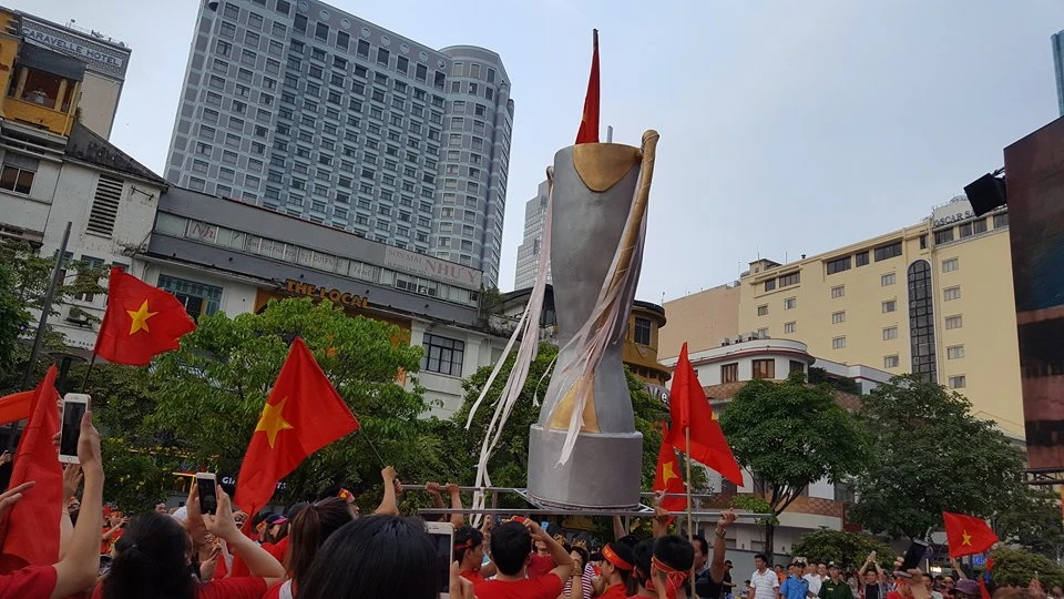 Chiếc cup đã mang về trên phố đi bộ Nguyễn Huệ. Ảnh: Đào Trang