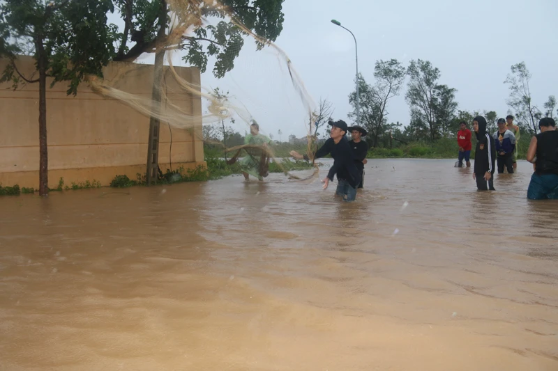 Theo người dân ở đây cho biết, sau bão thấy cá nhiều quá nên mọi người mang lưới ra thả, người quăng chài cũng được vài kg cá to.