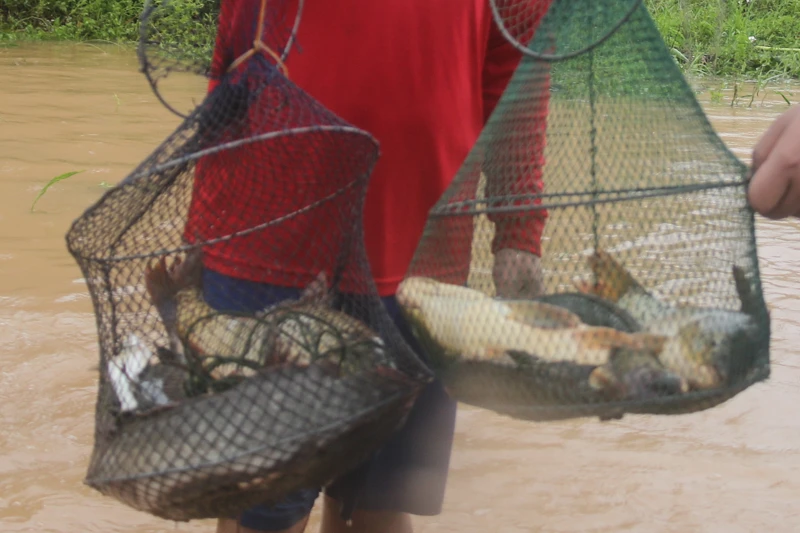 Nhiều người "trúng mánh" bắt được những mẻ cá to, trong đó chủ yếu là cá chép, cá rô phi.