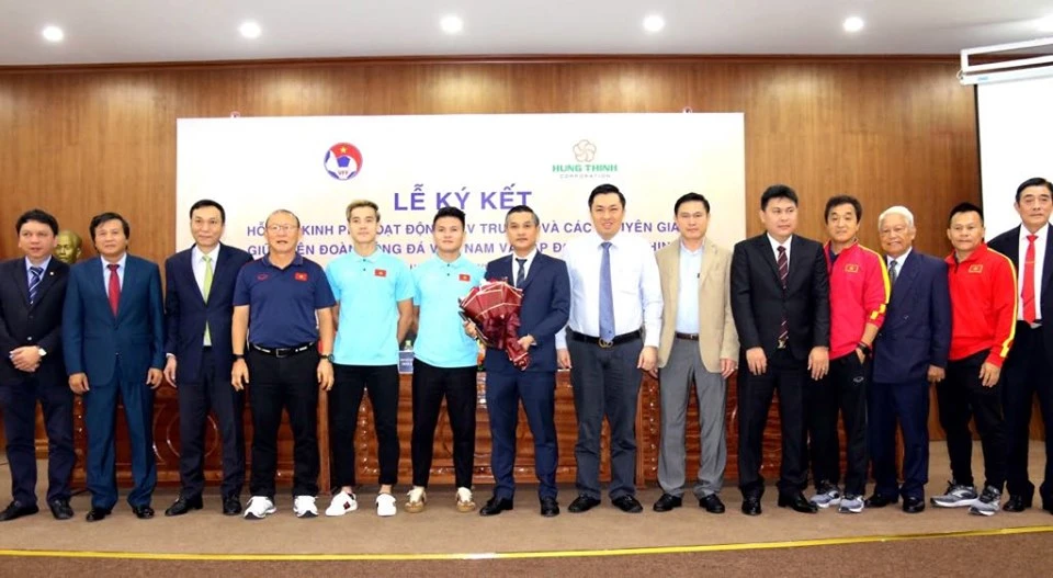 Tập đoàn Hưng Thịnh chung tay với VFF hỗ trợ kinh phí cho HLV trưởng Park Hang-seo và các cộng sự. Ảnh: NGỌC DUNG