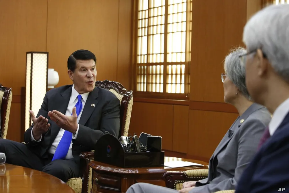Thứ trưởng Ngoại giao Mỹ Keith Krach trong một cuộc tiếp xúc với quan chức Hàn Quốc hồi năm 2019. Ảnh: AP