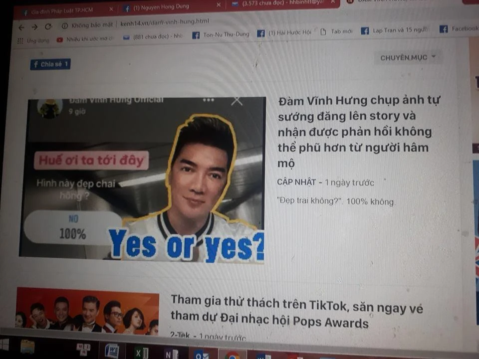 Hình ảnh từ trang cá nhân của Đàm Vĩnh Hưng được một số trang mạng lấy trưng cầu ý kiến để làm tin bài mà không xin phép, nội dung lại bất lợi cho anh sau đó lan truyền rộng rãi. Ảnh chụp màn hình bài báo mạng.
