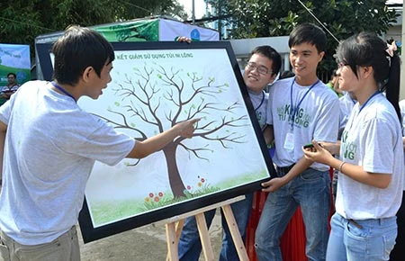 Ấn dấu vân tay cam kết giảm sử dụng túi nylon tại ngày hội túi xanh do Sở TN&MT TP.HCM tổ chức năm 2013. Ảnh: NGỌC CHÂU