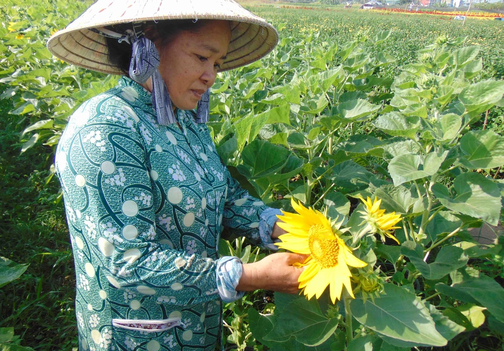 “Tôi trồng 2.000 chậu hướng dương, hiện bạn hàng đã tới xem và chắc giá mỗi chậu 45.000 đồng. Giá này cũng bằng giá năm trước. Có điều năm nay phân bón, cây giống… cái nào cũng tăng. Bán được khoảng 70% số hoa đang trồng thì cũng lời kha khá” – bà Thủy cho biết.