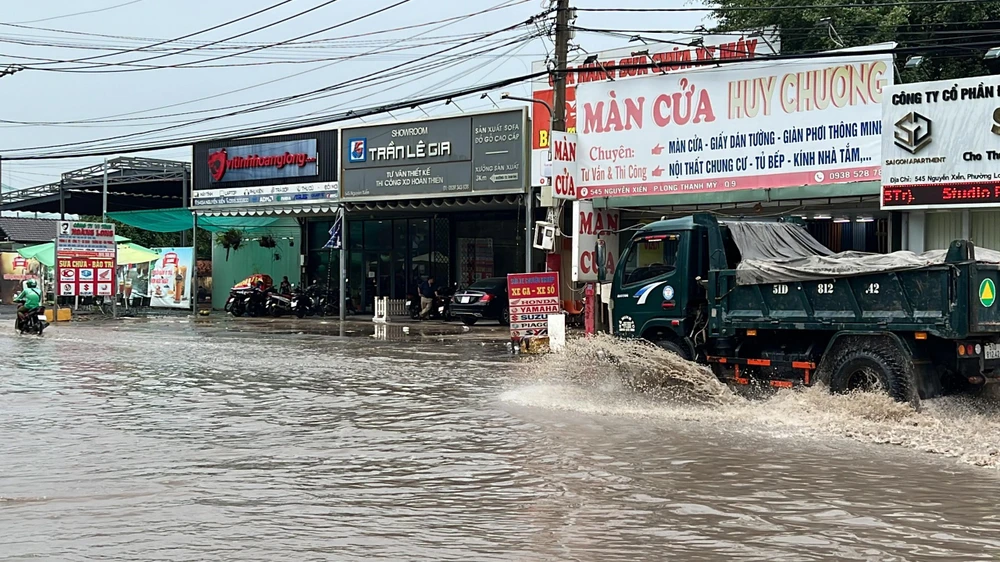 Thiếu đường cống thoát nước khiến tuyến đường bị ngập sâu. |