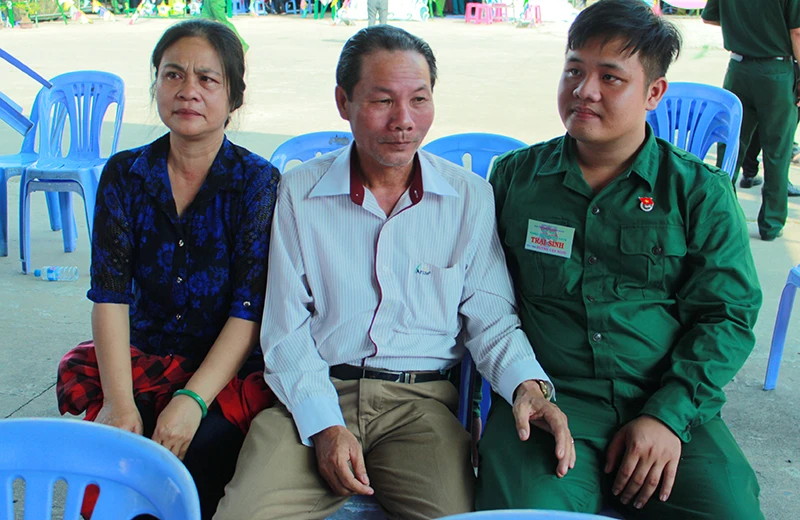 Cô Đoàn Thị Phương (ngụ phường Bình Hưng Hòa B) không ngừng rơi nước mắt khi nhắc đến đứa con trai 20 tuổi sắp trở thành người lính. Cô Phương cho biết, cậu con trai của mình vốn ốm yếu, nhiều bệnh tật từ nhỏ, nên những đợt trước không được kêu gọi nhập ngũ. Vì vậy nhiều năm qua, Trần Phượng Hoàng Anh luôn được bảo bọc, che chở bởi gia đình. Năm nay sức khỏe đã khá hơn nên Hoàng Anh được cha động viên lên đường. “Chỉ mong nó luôn khỏe để trở về với gia đình” - cô Phương nghẹn ngào.