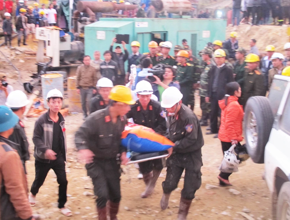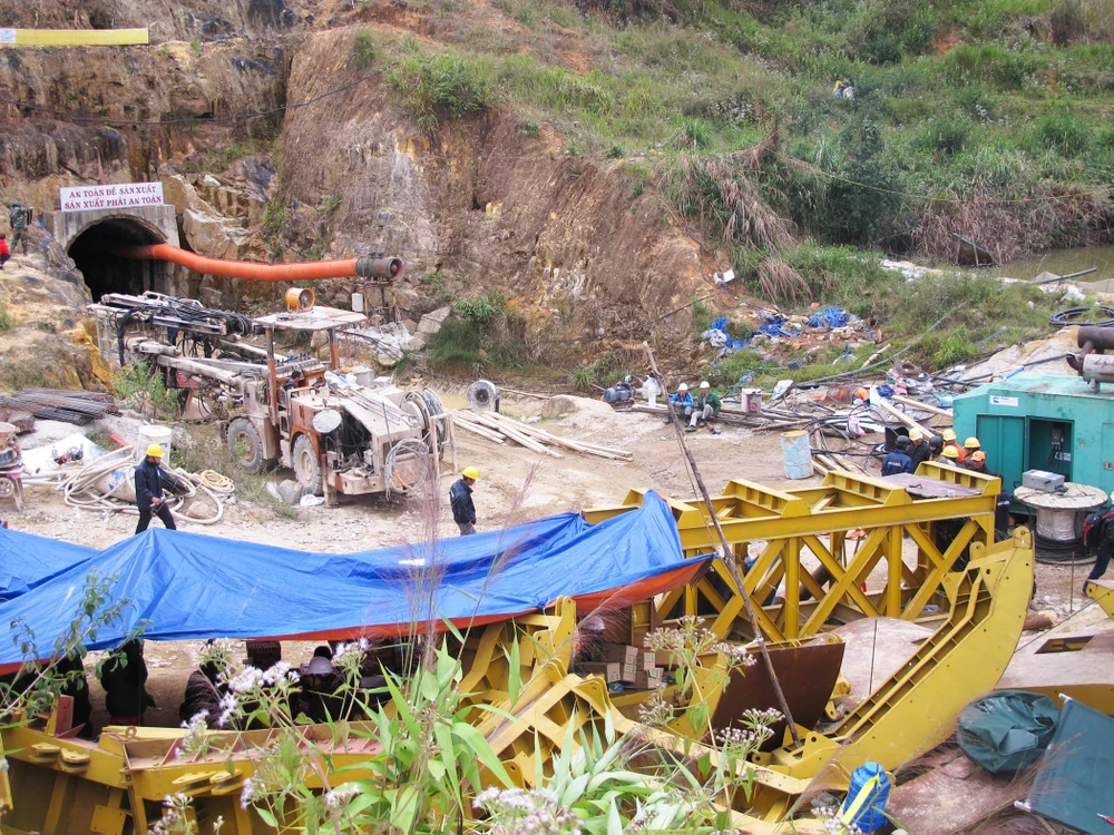 Cứu nạn công nhân bị mắc kẹt vụ sập hầm thủy điện Đạ Dâng. Ảnh: TẤN LỘC
