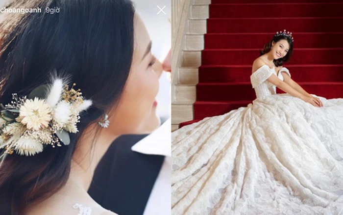 Cách đây vài ngày, Hoàng Oanh đã công khai hình ảnh chú rể, khoe thiệp cưới và bộ ảnh cưới do nhà thiết kế Trương Thanh Hải chụp tại Yên Tử (Quảng Ninh). Ngay lập tức, fan của Hoàng Oanh đã khen nức nở chú rể đẹp trai như diễn viên.