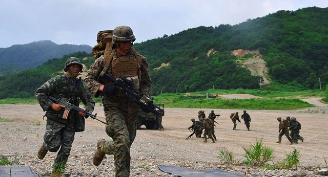 Lính thủy đánh bộ Mỹ - Hàn tập trận chung vào năm 2016. ẢNH: SPUTNIK