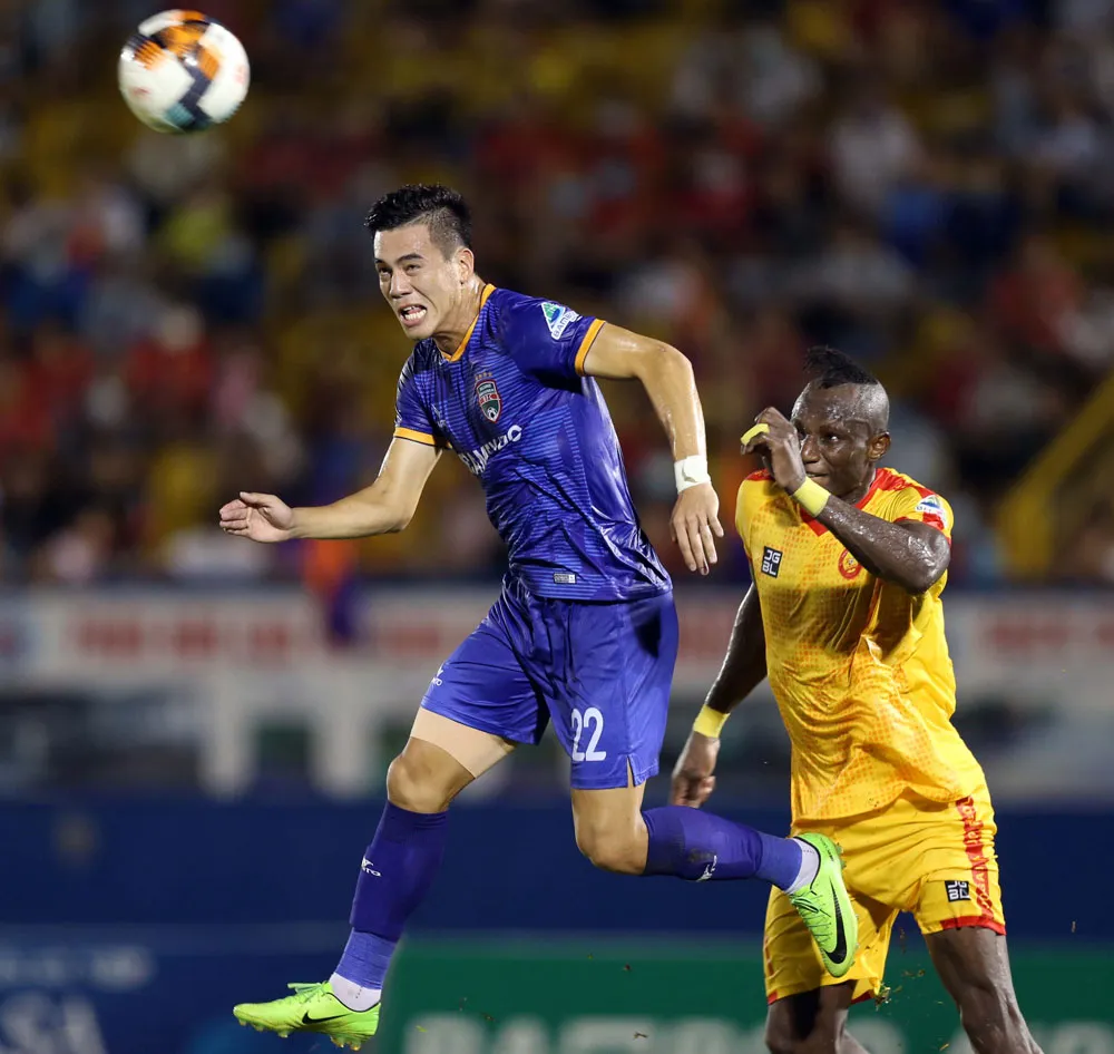 Hà Đức Chinh bị dính chấn thương trong trận gặp TP.HCM. Ảnh: TRÂM ANH.