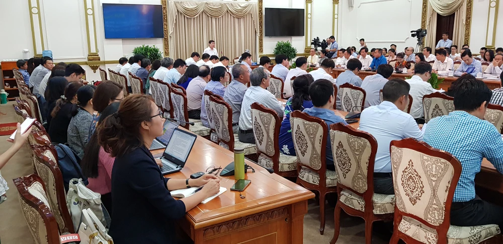Quang cảnh buổi gặp gỡ của lãnh đạo TP.HCM với các doanh nghiệp bất động sản hôm 22-2. Ảnh: K.Cường