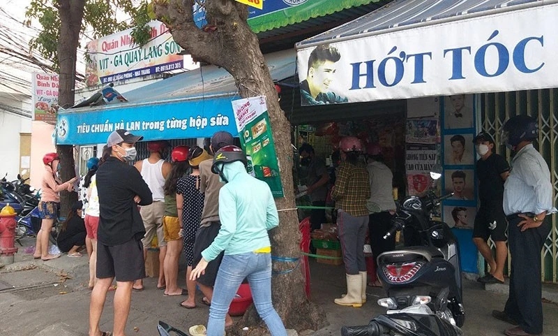 Người dân tập trung, chen lấn tại một cửa hàng ở TP Nha Trang khi dịch đang diễn biến phức tạp. Ảnh: THÁI BÌNH