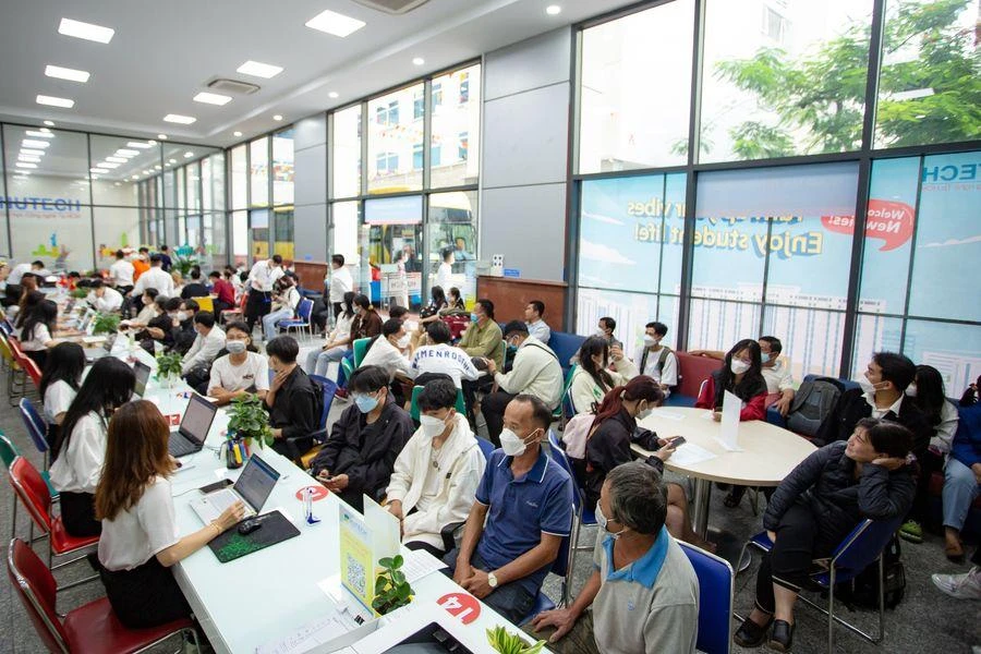 Đông phụ huynh, thí sinh có mặt sớm tại Trường ĐH Công nghệ TP.HCM để nhập học |