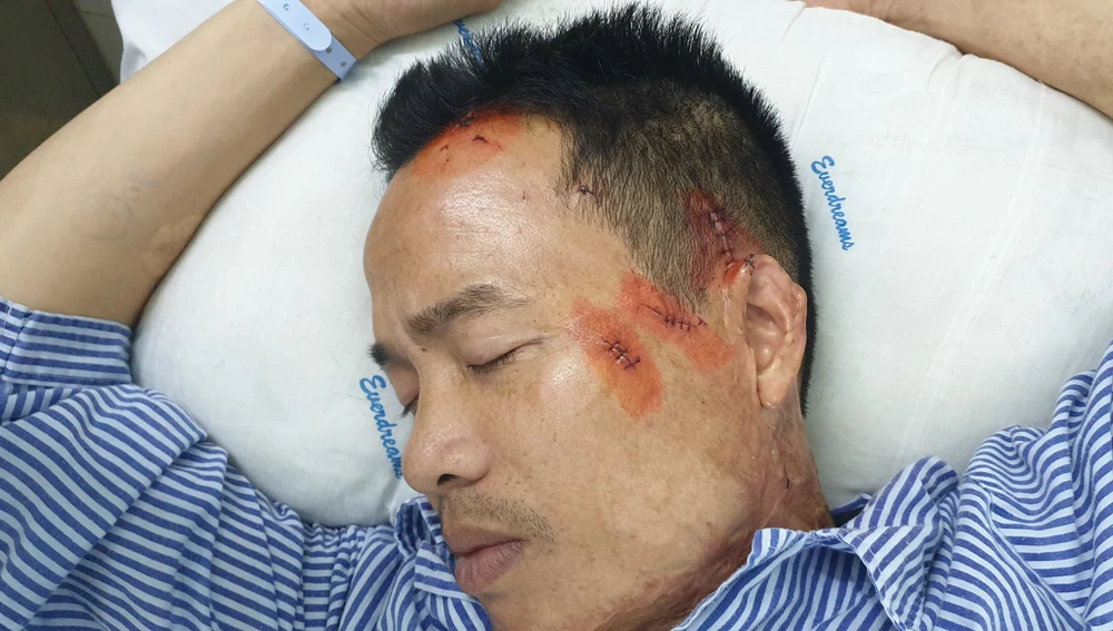 Nạn nhân được đưa đi cấp cứu với bốn vết thương ở đầu, mặt, phải khâu 22 mũi. Theo ghi nhận của Bệnh viện Việt Tiệp, anh Long bị chấn thương sọ não.