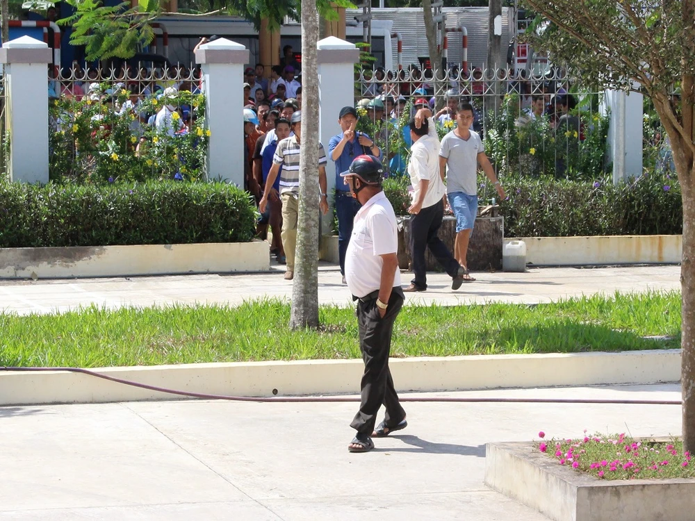 Nhiều người hiếu kỳ đến trụ sở BOT Sóc Trăng để xem các tài xế truy lùng người đã đánh tài xế Hưng. Ảnh: CTV