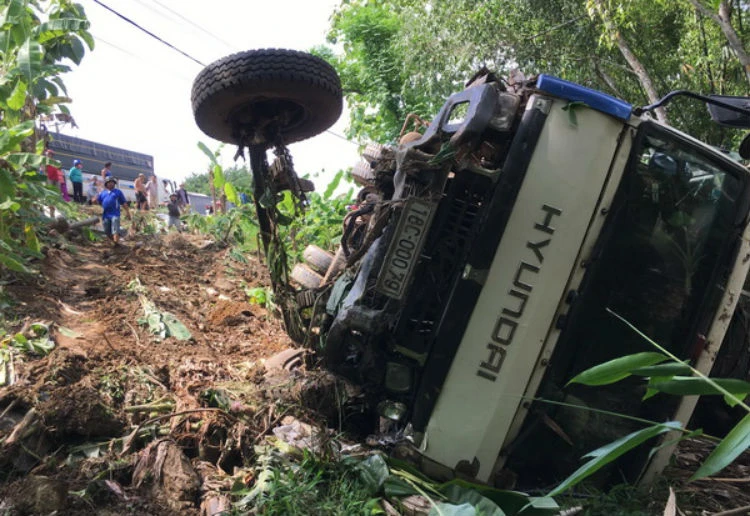 Cú tông mạnh khiến cả hai xe lật nhào, lăn xuống vực gần 10 m rồi lật ngửa. Lúc này, tài xế xe bảy chỗ bị thương nặng ở vùng đầu, kẹt cứng trong xe nên người dân tìm cách cạy cửa, đưa nạn nhân ra ngoài để đến bệnh viện cấp cứu. Riêng tài xế xe tải bị thương nhẹ.