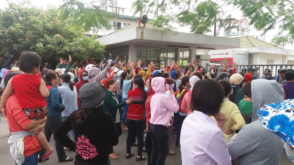Sau ba ngày nghỉ lễ, đến sáng nay công nhân kéo nhau đến trước cổng công ty để đình công.