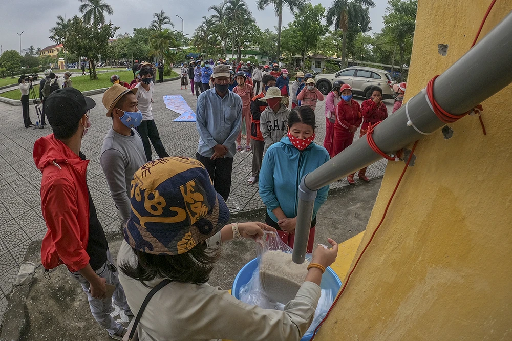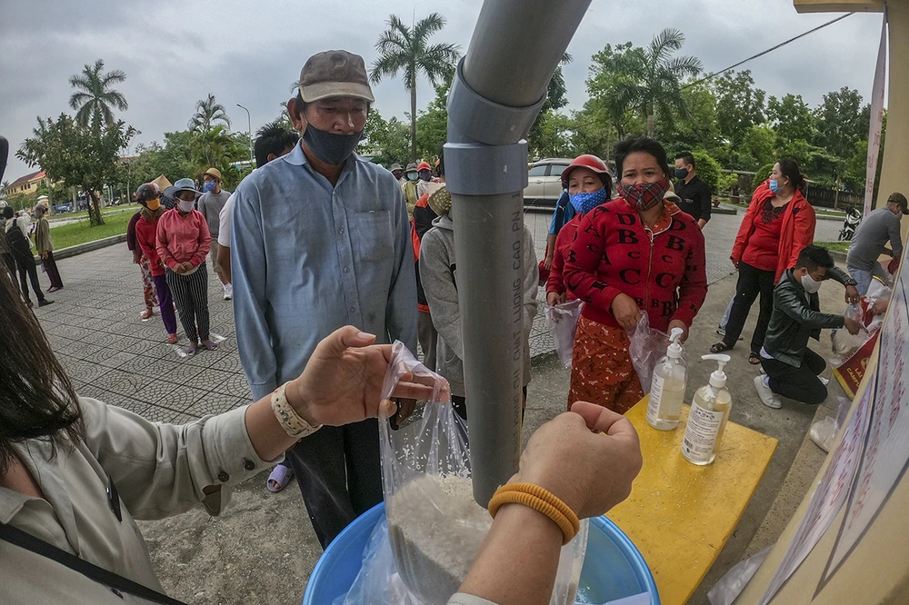 Trước đó vào ngày 11-4, "ATM gạo" được đặt tại địa điểm 28 Nguyễn Tri Phương không thể hoạt động được vì người dân tập trung quá đông, trái với tinh thần giãn cách xã hội. Sau đó ban tổ chức đã hoãn buổi phát gạo đó lại và mở thêm nhiều địa điểm phát gạo khác để giúp đỡ người dân. Ảnh: NGUYỄN DO