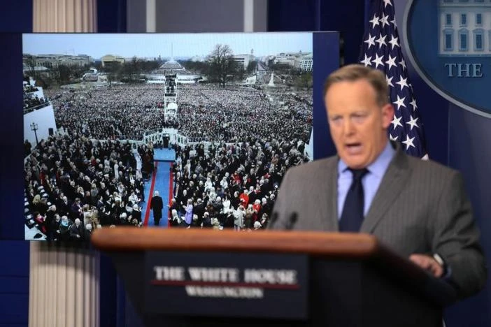 Đêm 21-1, Tân phát ngôn viên Nhà Trắng Sean Spicer đã kịch liệt chỉ trích các bức ảnh đang được lan truyền mạnh trên mạng xã hội Twitter. Các bức ảnh này cho thấy những khảng trống rất lớn tại quảng trường National Mall trong thời gian lễ nhậm chức của ông Trump.