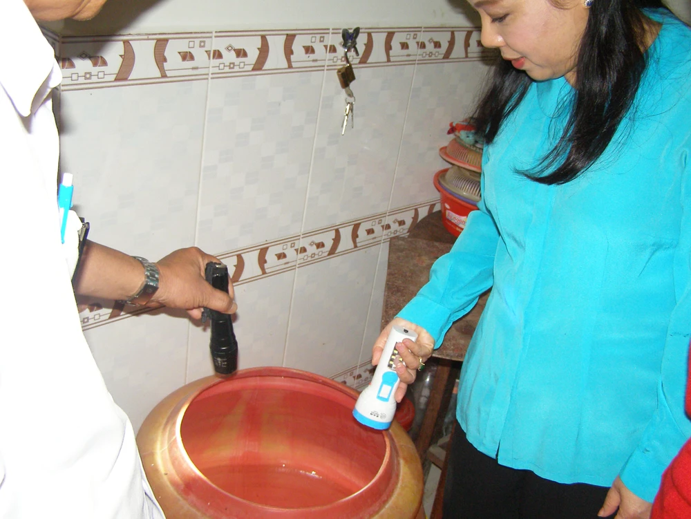 Tại hộ dân thứ ba, Bộ trưởng Bộ Y tế Nguyễn Thị Kim Tiến dùng đèn pin soi vào lu nước và phát hiện lăng quăng bên trong. Ngay sau đó, bộ trưởng cũng đề nghị chủ nhà nên thay nước và đậy kín nắp.