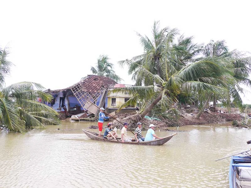 Từ đêm 15 sáng 16-12, lũ ồ ạt đổ xuống, xé toạc một đoạn hơn 50 m bờ sông rồi tấn công vào xóm Xuân Cỏ, thôn An Xuyên 3, xã Mỹ Chánh, huyện Phù Mỹ, Bình Định. Chỉ trong vài tiếng đồng hồ, cả xóm bị đổ sập theo dòng lũ. Trong gần 20 ngôi nhà ở khu dân cư này, có đến 11 ngôi nhà bị sập hoàn toàn, còn lại bị đánh vỡ tan tác. Toàn bộ ao đìa nuôi tôm đều bị xóa sổ. Một phần ngôi làng trở thành con lạch, dòng chảy mới của sông.