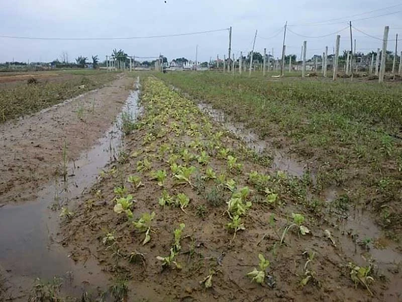 Vườn rau xà lách ở huyện Quảng Điền bị héo lầy, nông dân mất trắng. Ảnh: ND