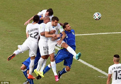 Bàn thắng của đội trưởng Godin của Uruguay sau cú đánh vai tung lưới Buffon ở phút 81 như một nhát dao kết liễu bóng đá Ý. Dấu chấm hết cho Azzurri quá đỗi phũ phàng. Nó bắt đầu từ chiếc thẻ đỏ của trọng tài người Mexico tặng cho Marchisio khi trung vệ này đạp vào ống đồng của Arevalo đặt Ý vào thế 10 chống 11.