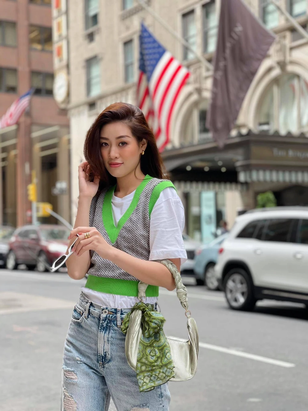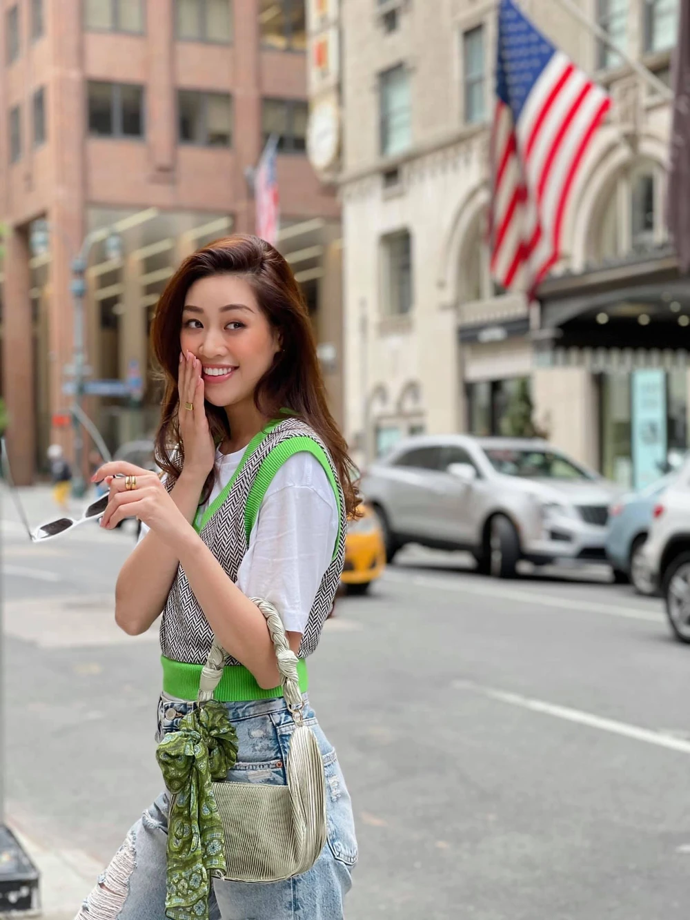 Thời trang đường phố của Khánh Vân trên đất Mỹ. Ảnh: FBNV