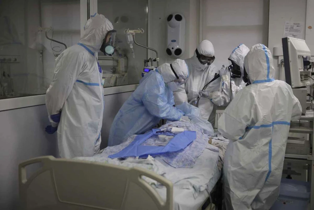 Chăm sóc, điều trị bệnh nhân COVID-19 tại một bệnh viện ở TP Krasnodar thuộc vùng Krasnodar, phía nam nước Nga, ngày 2-11. Ảnh: AP