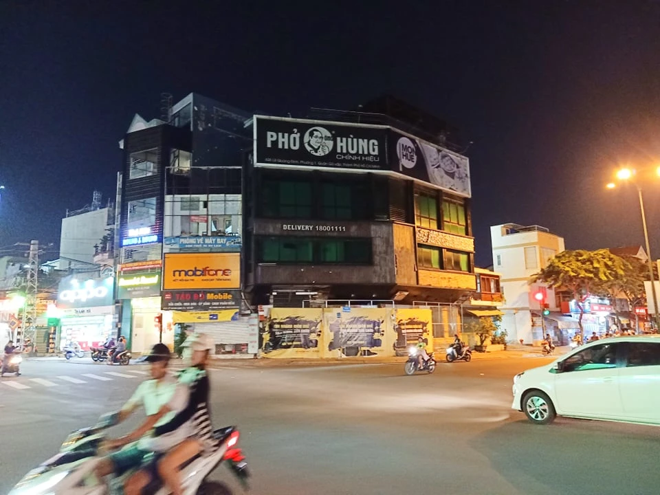 Sở hữu hai mặt bằng giữa vòng xoay Lê Quang Định - Phạm Văn Đồng tấp nập người qua lại nhưng căn nhà hai tầng nơi bán Món Huế và Phở Hùng lại trở nên tối tăm và bao vây bởi biển báo "Công trình tạm ngưng để sửa chữa".