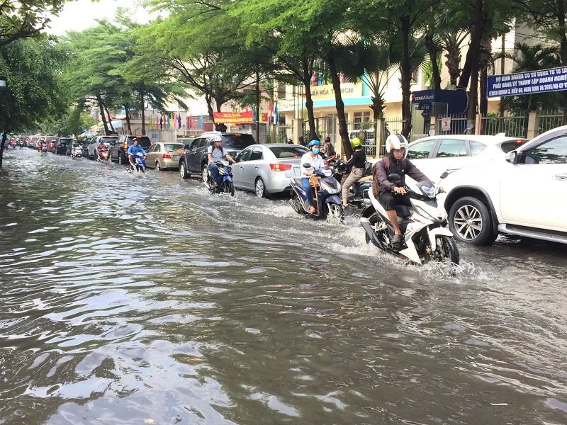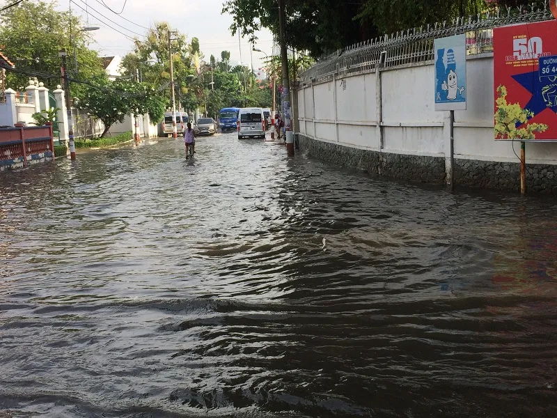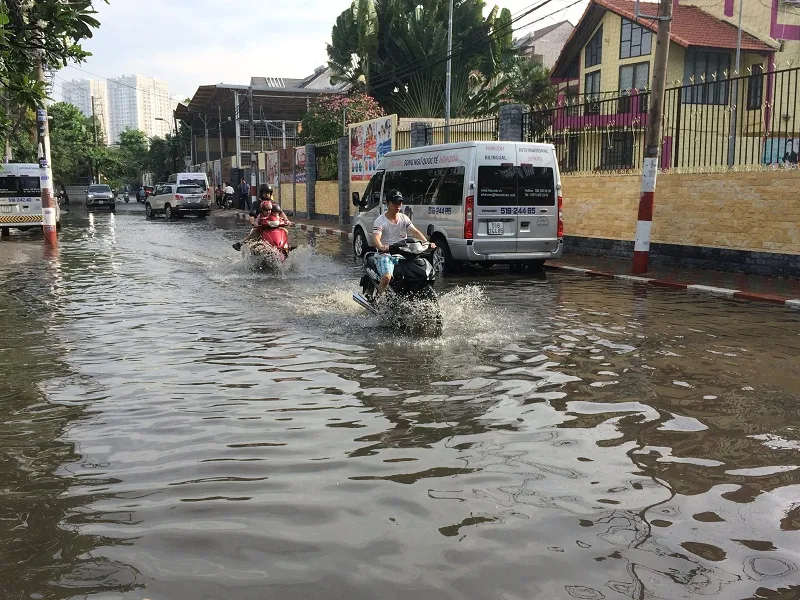 Nước ngập sâu trên nhiều tuyến đường quận 2.