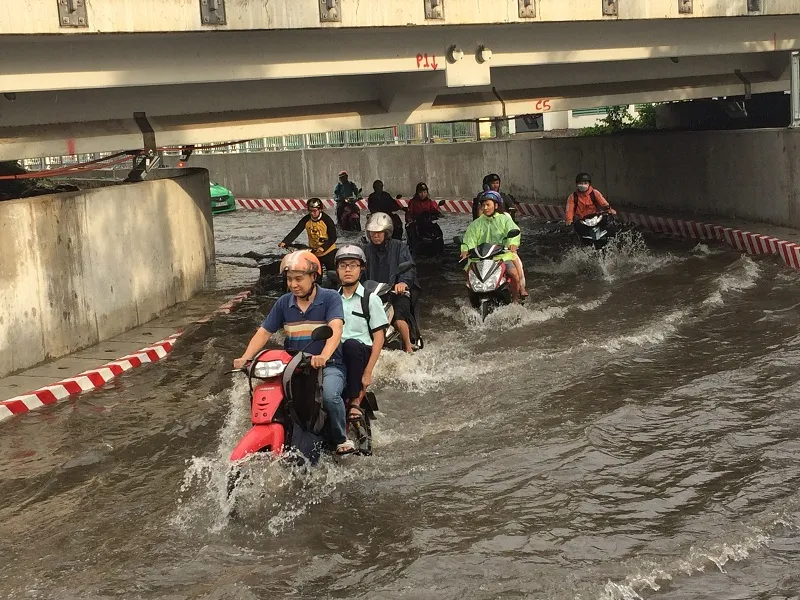 Trong khi đó, hầm chui tại dạ cầu Bình Triệu (quận Bình Thạnh) ngập sâu trong nước, có những đoạn ngập hơn nửa mét, hàng chục phương tiện vừa tới khu vực nước sâu là chết máy.
