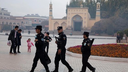 Lực lượng Trung Quốc đang đảm bảo an ninh tại một nhà thờ Hồi giáo ở Tân Cương. Ảnh: WTOPNEWS