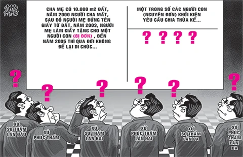 Theo hồ sơ, cha mẹ của nguyên đơn, bị đơn có phần đất gần 10.000 m2. Năm 2000, người cha đã đăng ký nhưng chưa được cấp giấy đỏ thì mất nên sau đó cơ quan chức năng ghi tên người mẹ trên giấy.