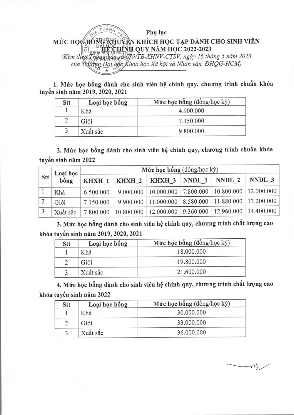 Ngày 5-6, Phòng công tác sinh viên, Trường ĐH KHXH&NV (ĐH Quốc gia TP.HCM) chính thức công bố danh sách sinh viên được nhận học bổng khuyến khích học tập của học kỳ 1, năm học 2022-2023.